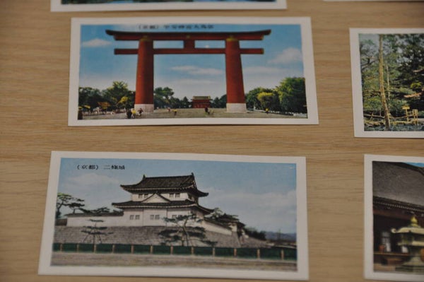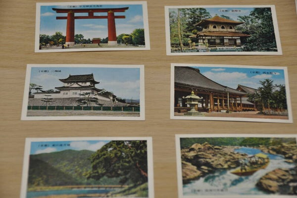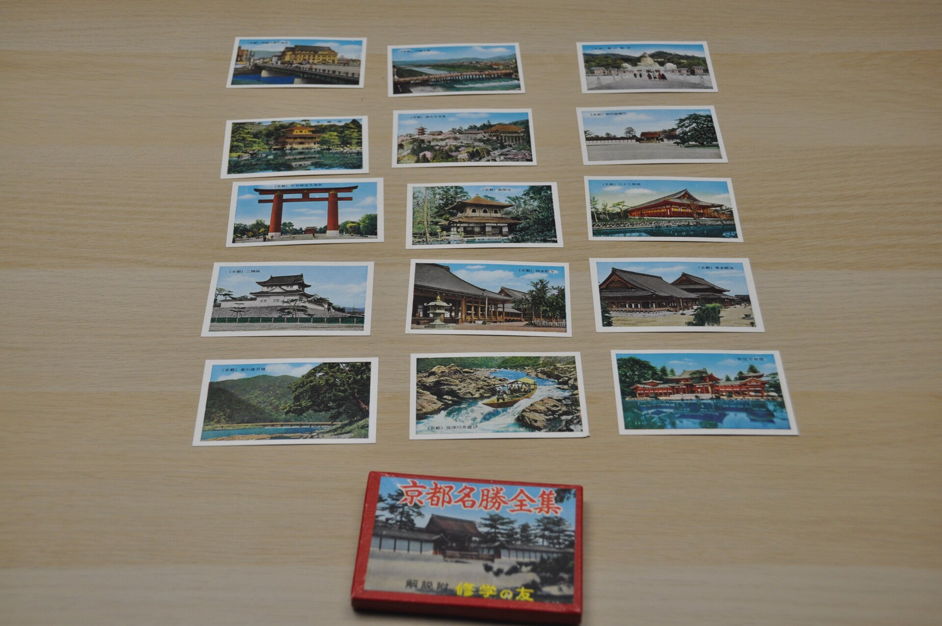 Vintage schooltrip sightseeing aid with 15 cards of Kyoto sightseeing spots with original box.