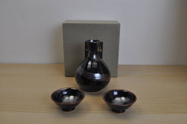 Black and silver sake set with 2 cups