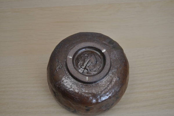 This is a traditional Raku-yaki (楽焼) matcha bowl, a style deeply tied to the Japanese tea ceremony and the wabi-sabi aesthetic. The bowl features a rustic hand-molded form with natural irregularities, embodying the spirit of imperfection that is cherished in tea culture.