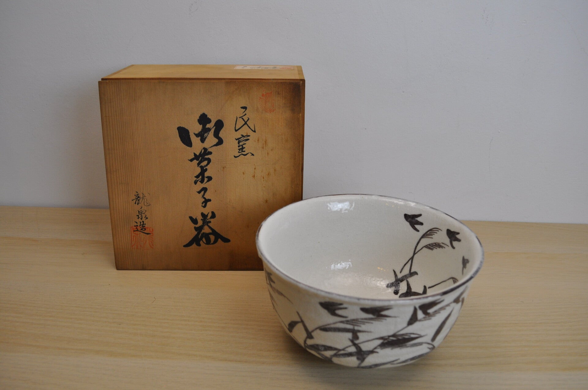This Large Akazu-yaki (赤津焼) confectionery bowl showcases the refined aesthetics and long ceramic tradition of the Akazu kilns of Seto, Japan. Crafted by the artist 龍泉 (Ryūsen), the piece exemplifies the region’s characteristic balance of subtle glaze work, natural textures, and expressive brush painting.