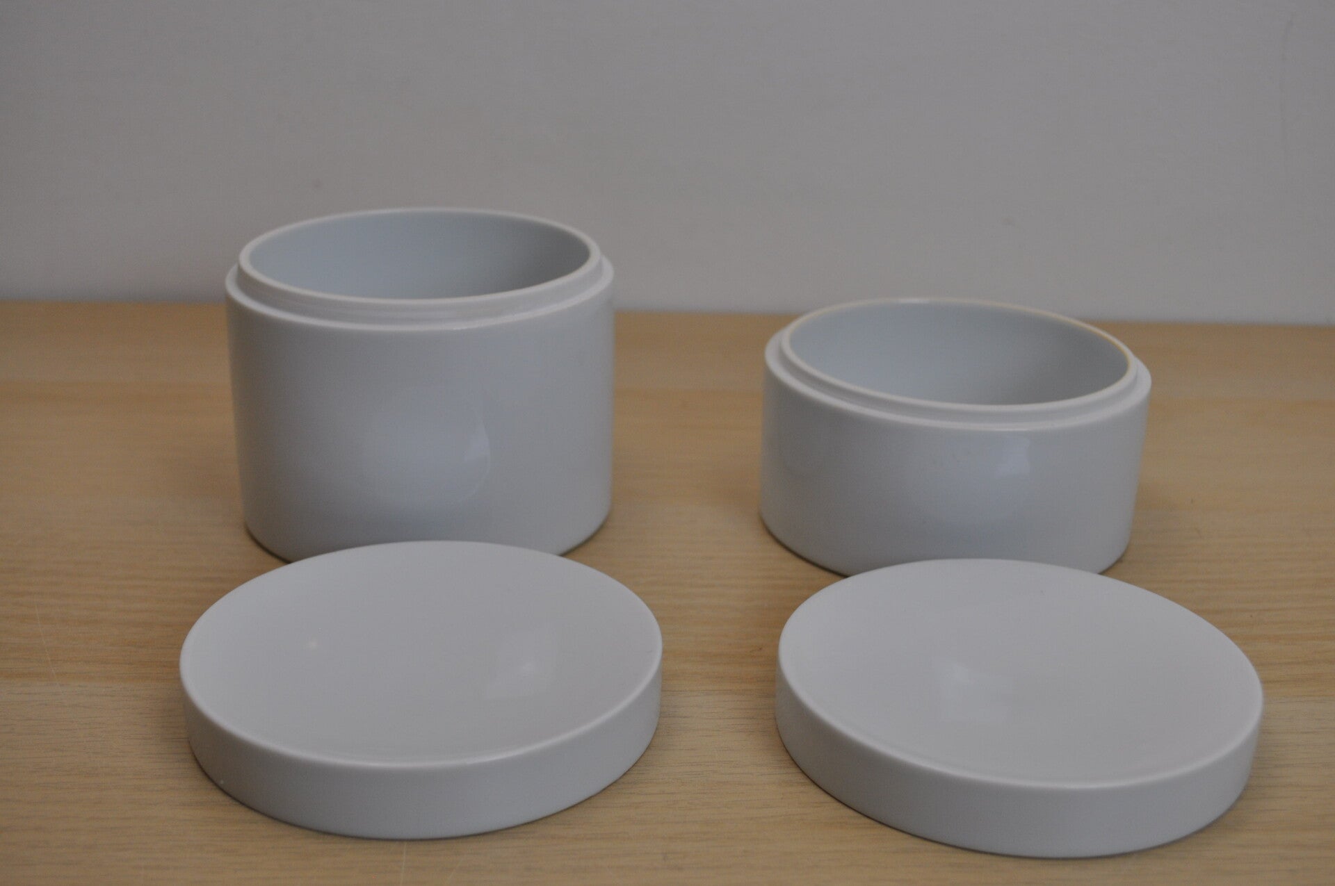 2 vintage white porcelain storage containers from Hakusan Japan.