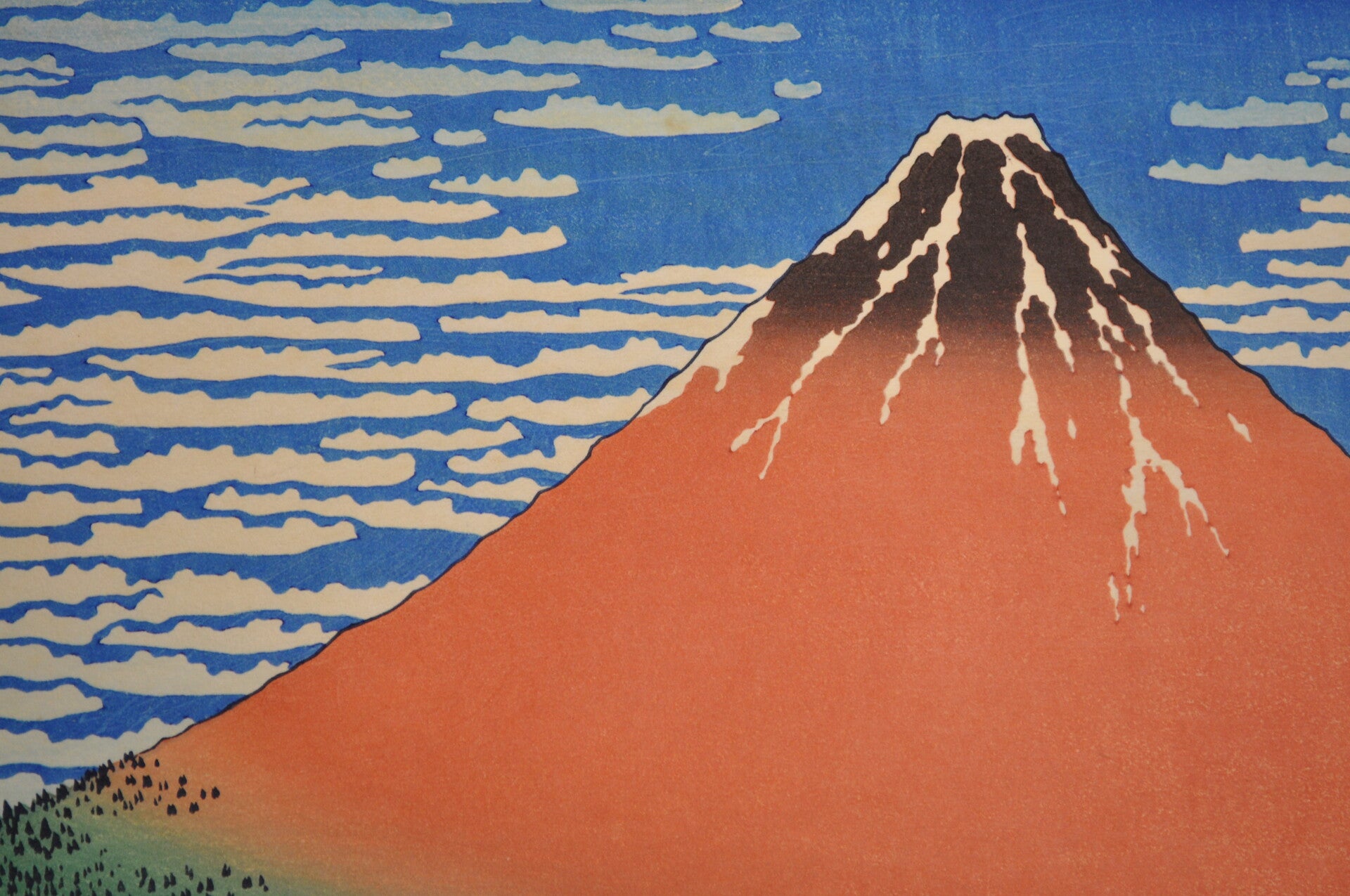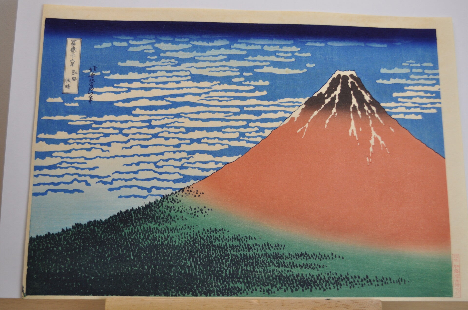 Title: 36 views of Mt Fuji: Clouds over red Fuji